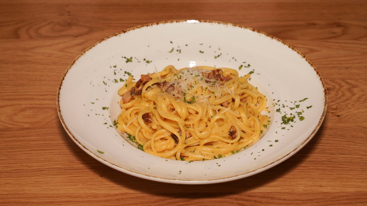 Linguini sa pančetom, parmezanom, peršunom i jajima