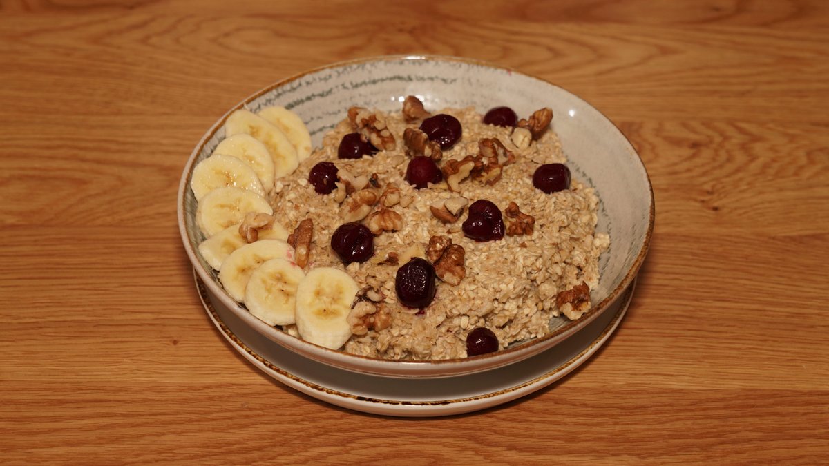 Ovsena kaša sa bananom, lešnicima i crvenim voćem