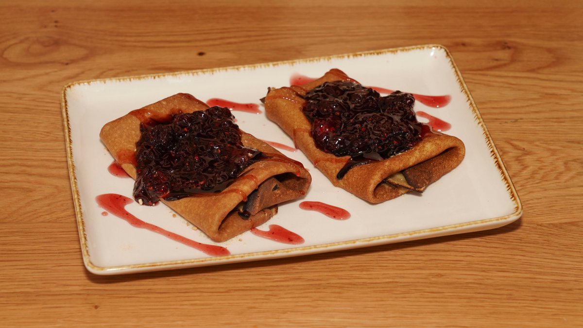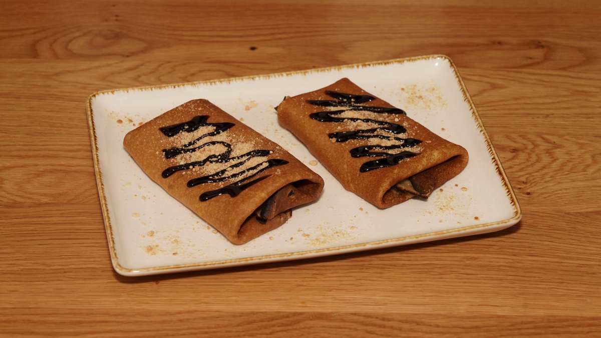 Dve palačinke sa kremom, plazmom i čokoladnim prelivom