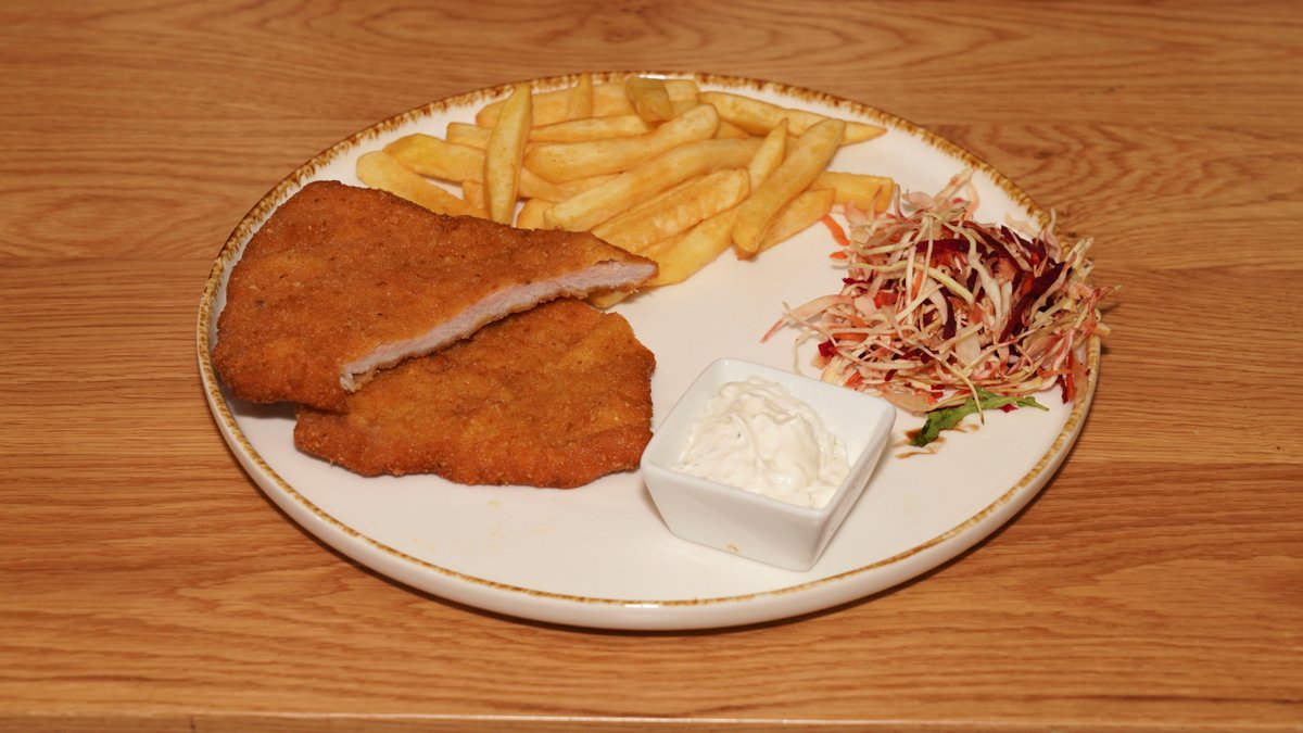 Panirani laks 250g sa pomfritom 100g i vitaminskom salatom 50g
