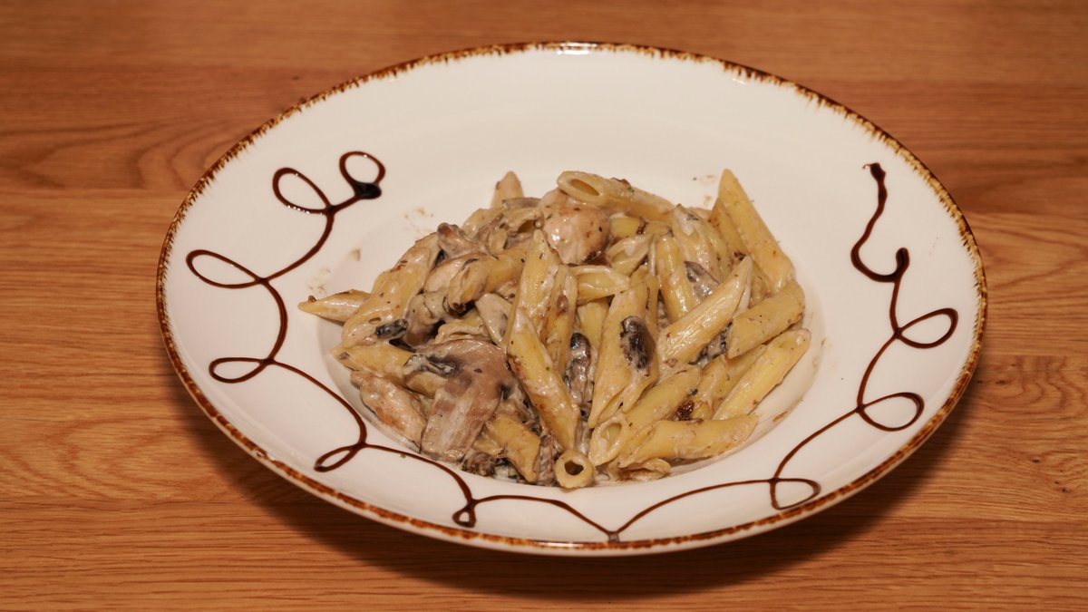 Pene sa piletinom, šampinjonima, parmezanom i neutralnom pavlakom