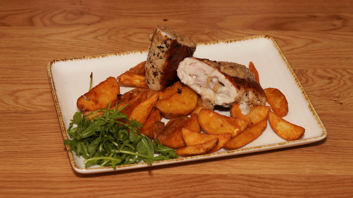 Punjeni pileći file sa gorgonzolom i pršutom 300g sa pekarskim krompirom 150g
