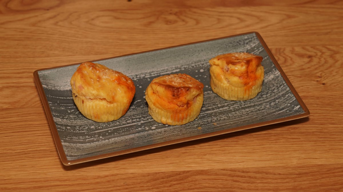 Tri mafin pite sa povrćem, kulenom i sirom, uz kiselo mleko i krastavčiće