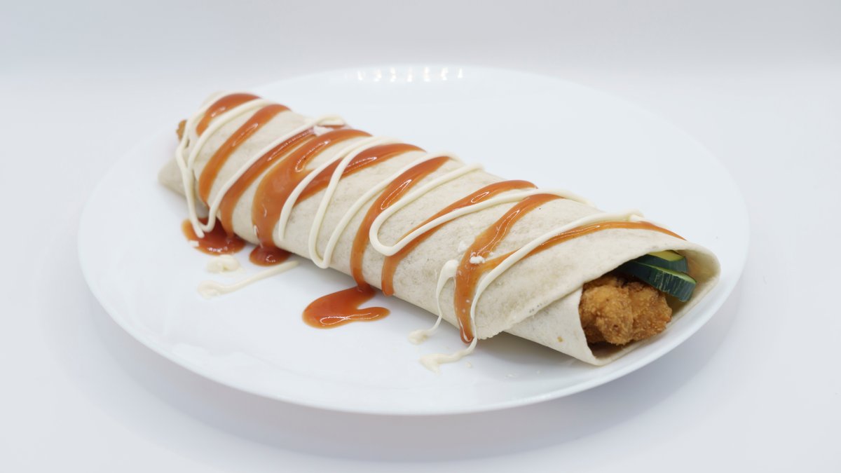Pohovana piletina, zelena salata, kupus, krastavac, paradajz, sargarepa, pomfrit, sos
