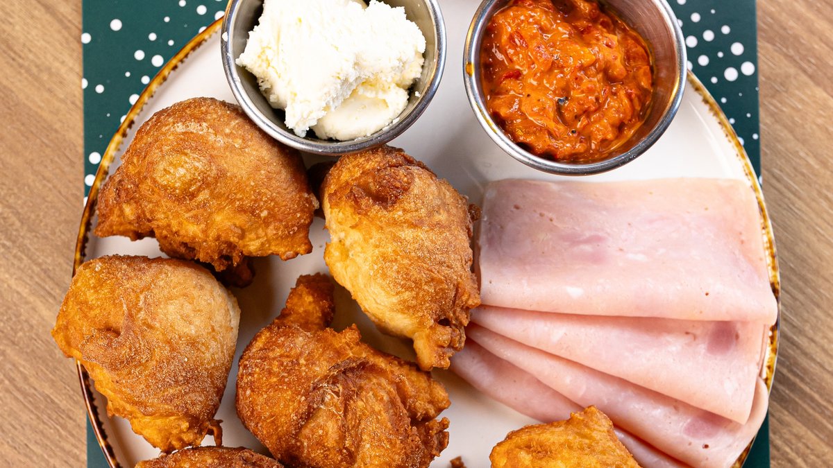 Prženice punjene gaudom, domaćim namazom i šunkom, sa dodatkom ajvara i parmezana