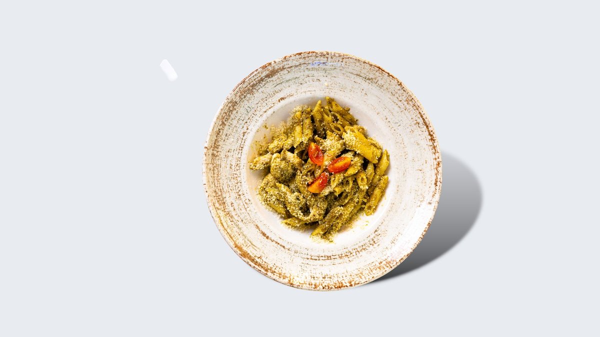 Pene, pesto sos, pileći file, parmezan, čeri paradajz