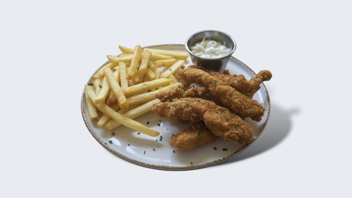 Pohovani pileći štapići sa dodatkom pomfrita i tartar sosa