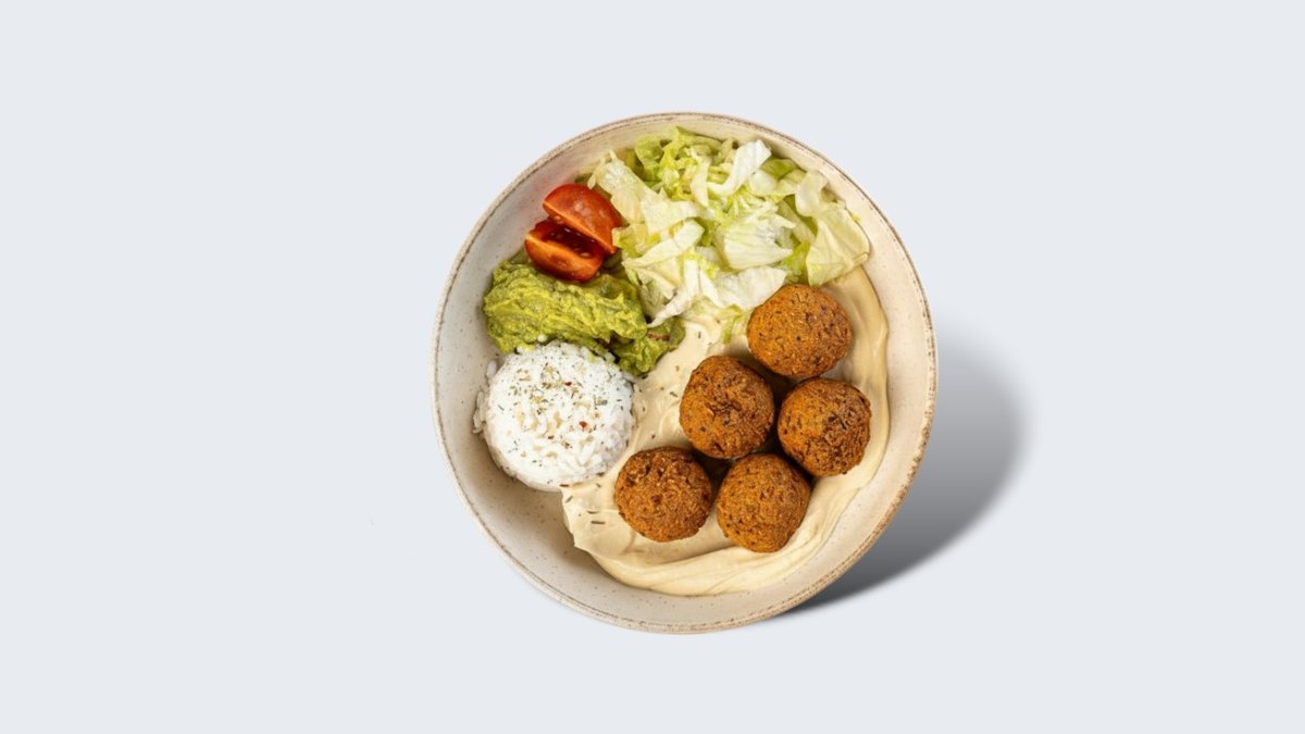 Falafel, humus, avokado namaz, pirinač, salata, golica i citrusni dresing