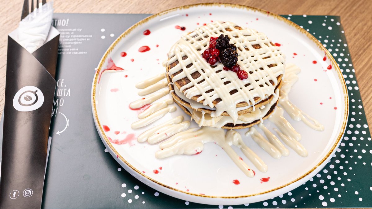 Američke palačinke sa pistać i vanila kremom i šumskim voćem 350g