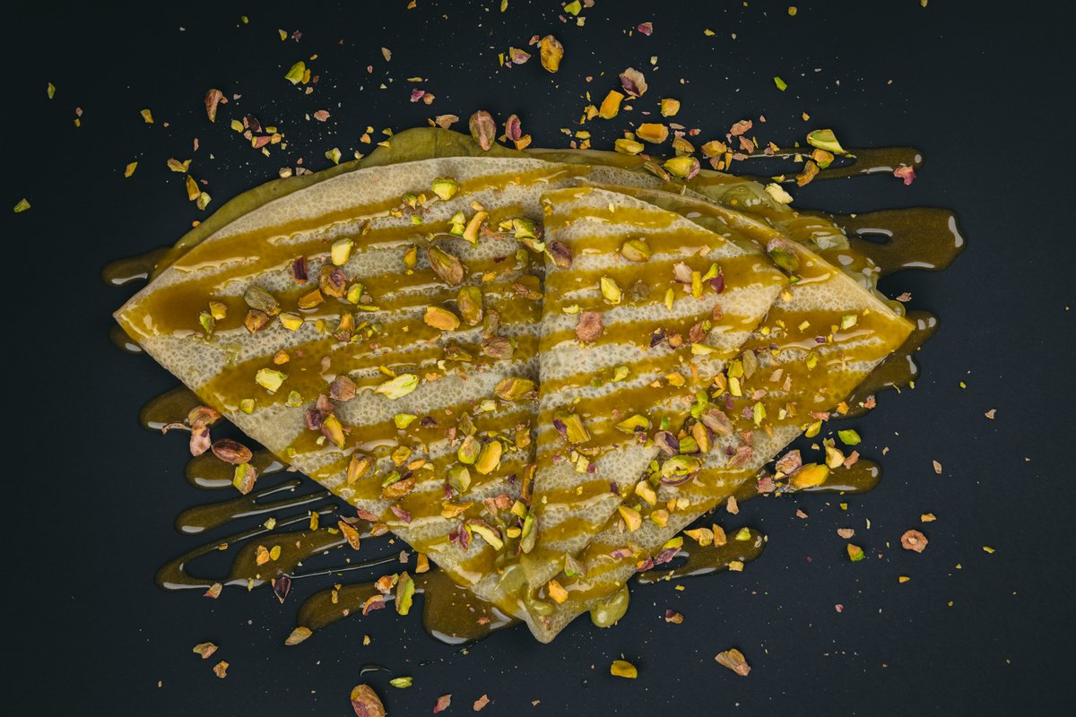 Testo za palačinku, krem od pistaća, pistaći, toping od pistaća