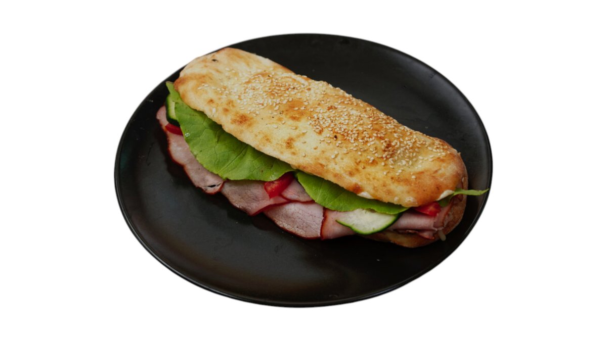 Kifla sa kajmakom, prsutom, zelnom salatom i prelivima