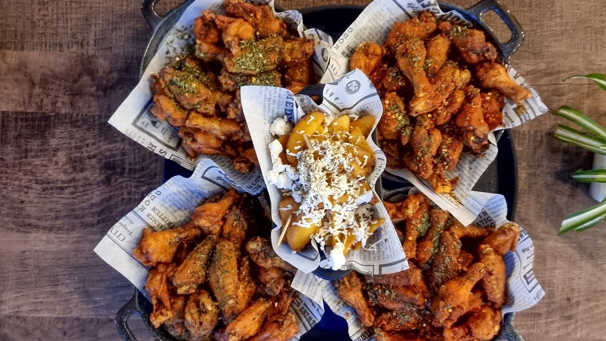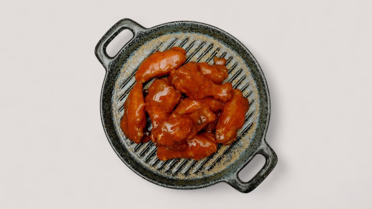 Hrskavi pileći štapići sa kačkavaljem, iceberg salatom, kiselim krastavčićima,ranč i ljutim bbq sosom u zapčenoj tortilj sa pomfritom u prilogu.