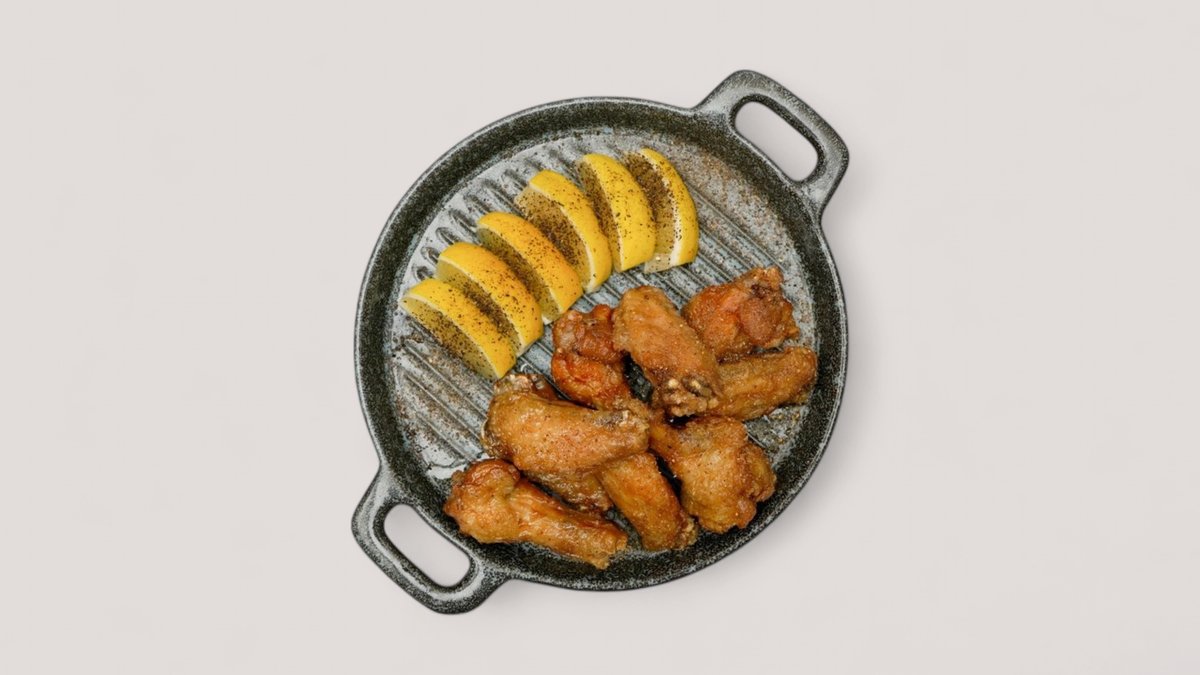 Sveži pileći file u našem hrskavom pohu (250gr) sa limun-beli luk (20ml) sosem u prilogu.