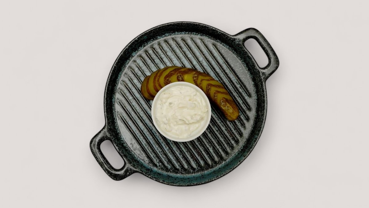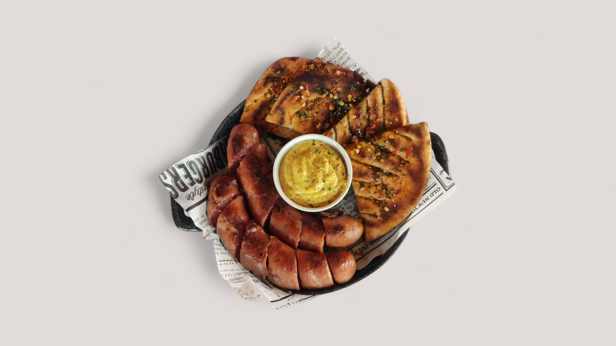 Kobasica sa kačkavaljem 300gr naš kobasica sos i meraklijski 'lebac u prilogu.