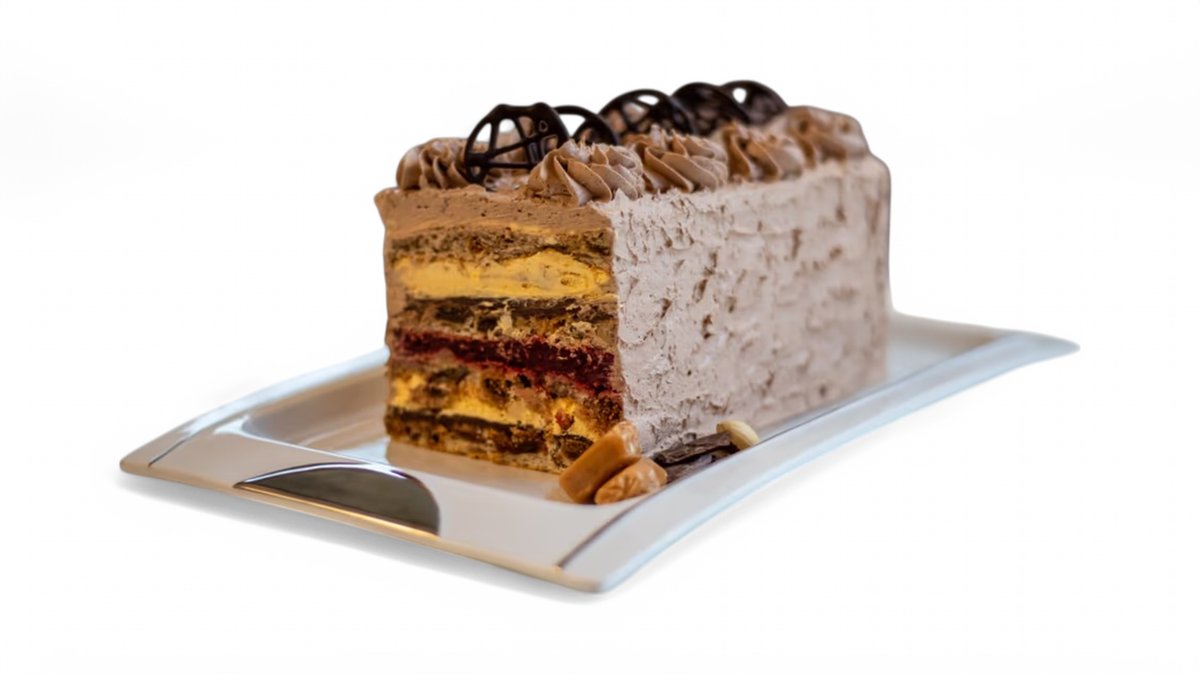 16 parčeta - čokoladni biskvit , nutela krem , čokoladni krem , nugat napolitanka , grilijaš i lesnik