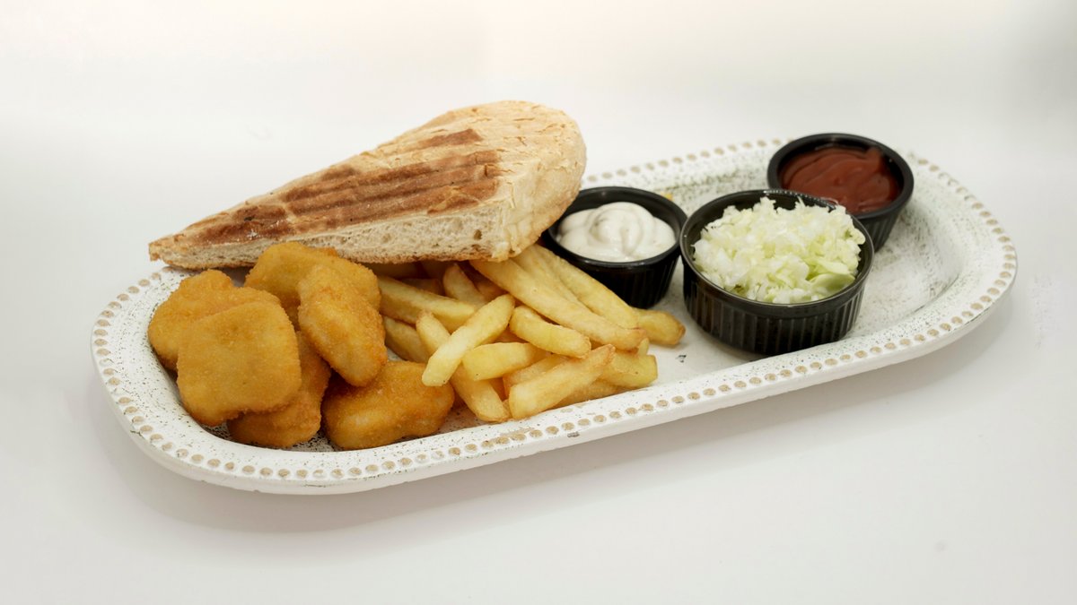 6 nugetsa, pomfrit, tartar sos, kečap, salata