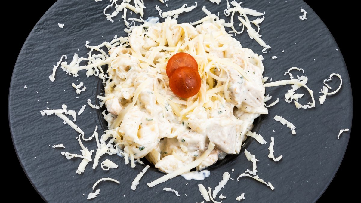 Pavlaka, pileći file, mocarela, gorgonzola, uje, parmezan.