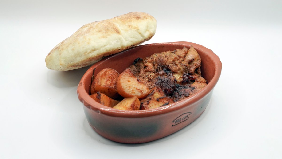 Marinirana jagnjetina pečena četiri sata u zemljanoj posudi. Sočno, aromatično i mirisno, kao sa porodičnog ručka. Zalogaj koji vraća u detinjstvo.