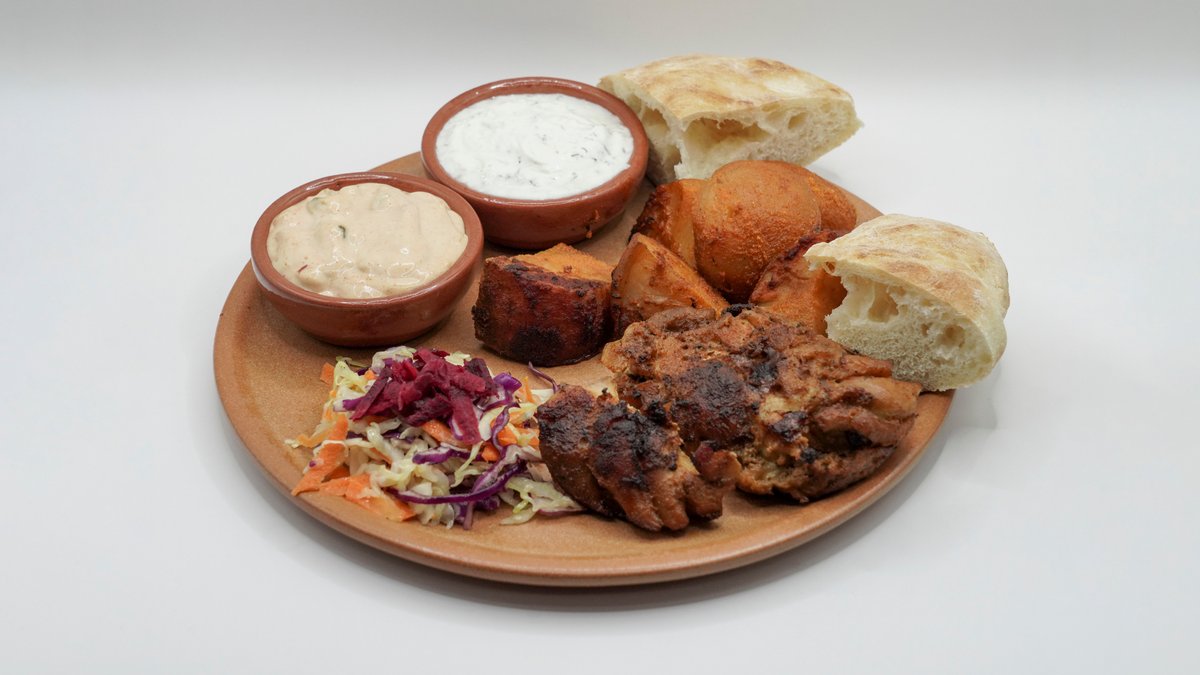 Sporopečeni pileći batak i karabatak (150 g mesa) pripremljeni na tradicionalan način, uz 150 g toplog pekarskog krompira, svež somun i dva sosa — tzatziki i burger sos. Ukusan, zasitan i kompletan obrok idealan za svaki dan.