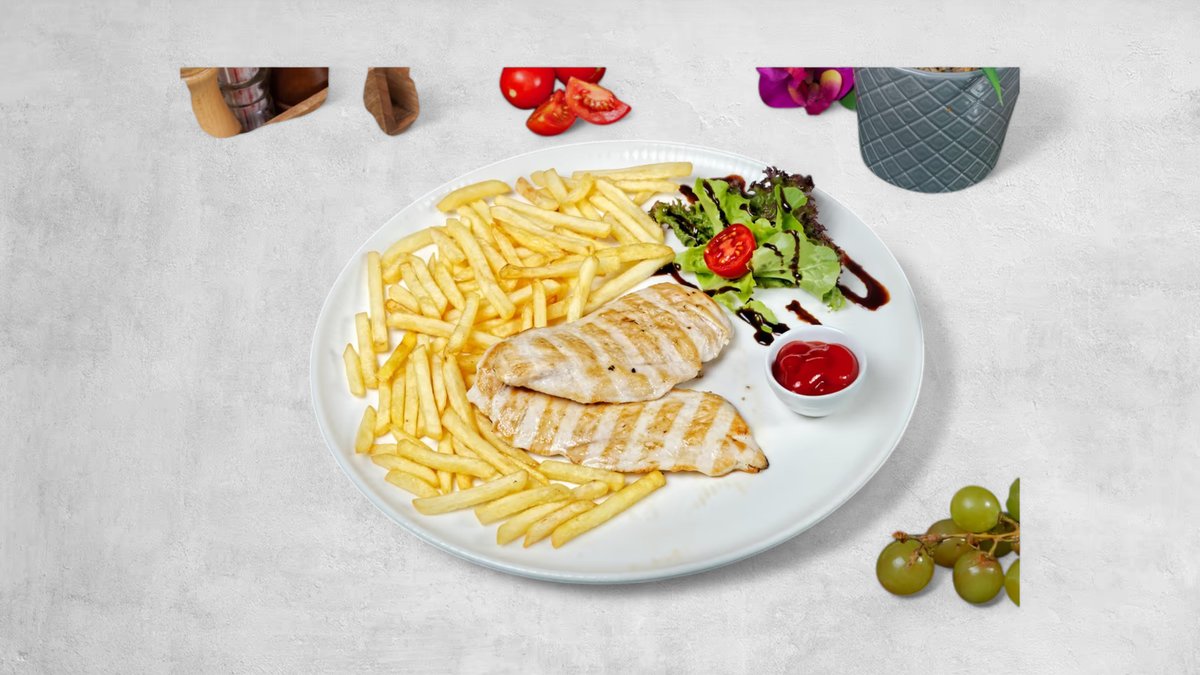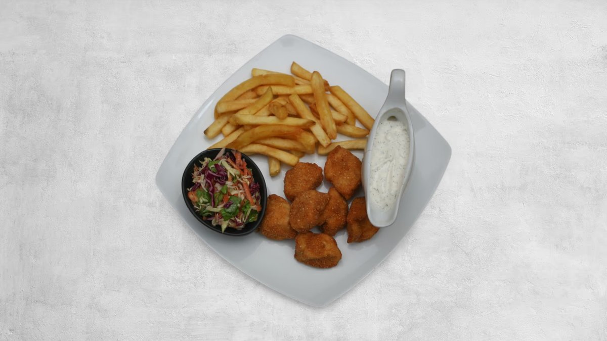 (200g, pileći file, tartar sos, pomfrit, vitaminska salata, lepinja)