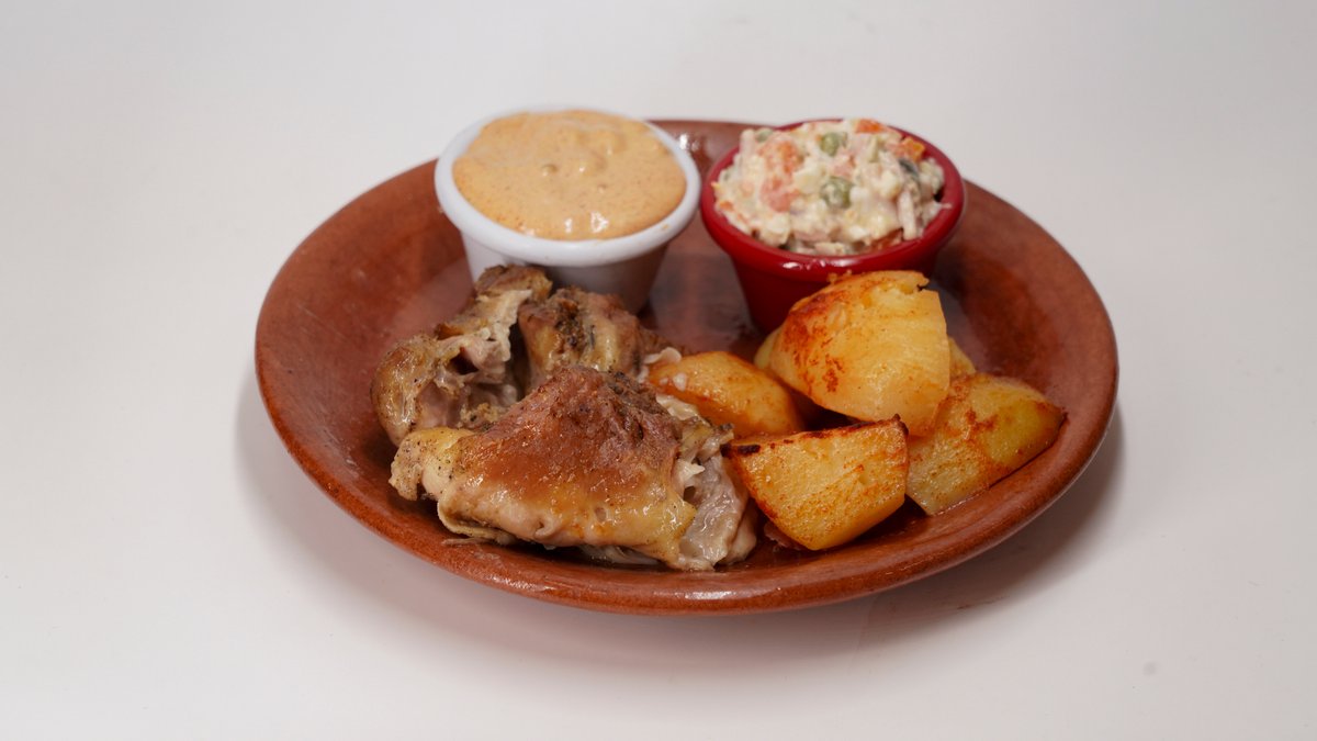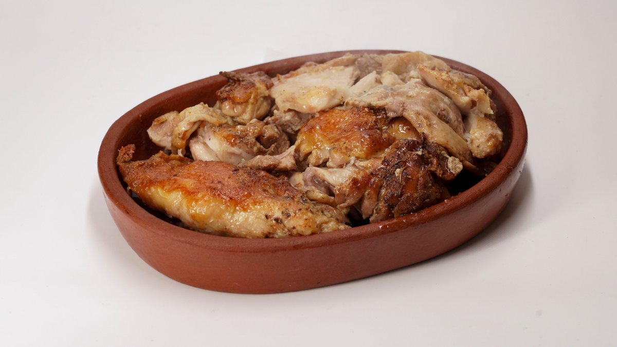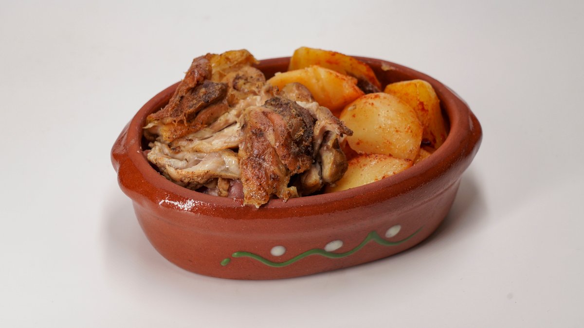 150g pilećeg mesa, 150g pekarskog krompira, somun. Pileći batak i karabatak bez kostiju,pripremljeno po starim recepturama na tradicionalan način u zemljanim posudama-saču.Pažljivo pripremljena piletina, sporo pečena pod sačem na tihoj vatri, dok meso ne postane izuzetno mekano i sočno. Tokom pečenja upija mirise začina i prirodnih sokova, uz blago zapečenu, hrskavu kožicu. Tradicionalna priprema pod sačem daje pun, domaći ukus koji osvaja već na prvi zalogaj. Pažljivo sečen krompir, sporo pečen pod sačem dok ne dobije zlatno-hrskavu koricu i mekanu unutrašnjost. Prožet aromama začina i domaće pripreme, savršen kao prilog ili samostalno tradicionalno jelo.