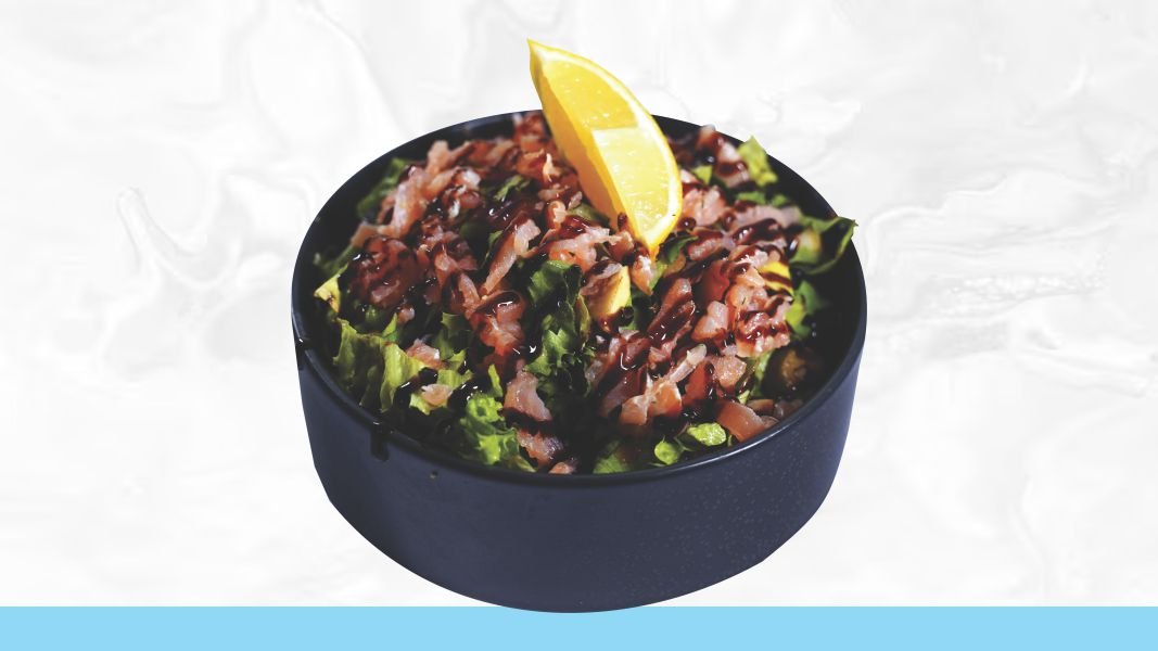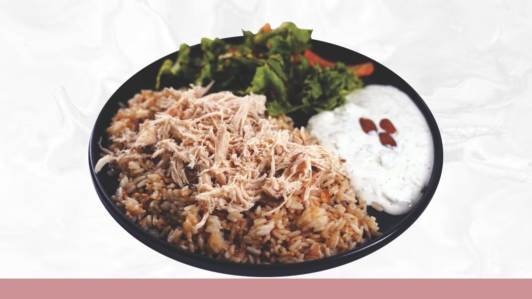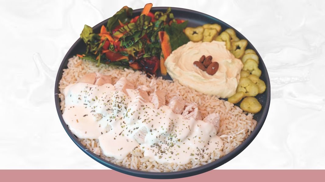 Pirinač, piletina, mix salata, domaći tarator, badem, dresing po izboru