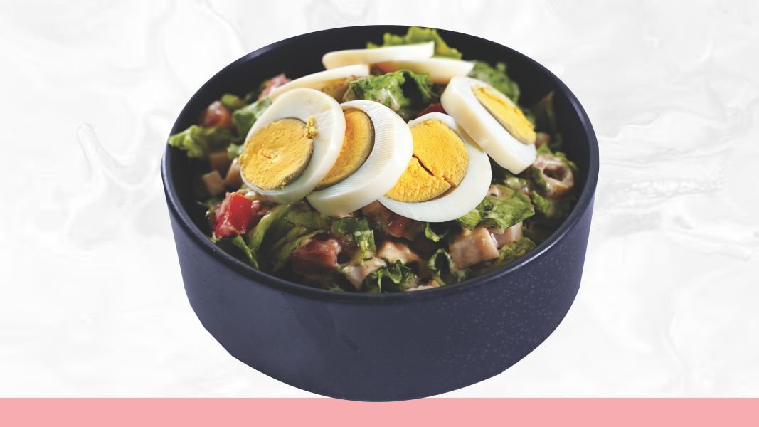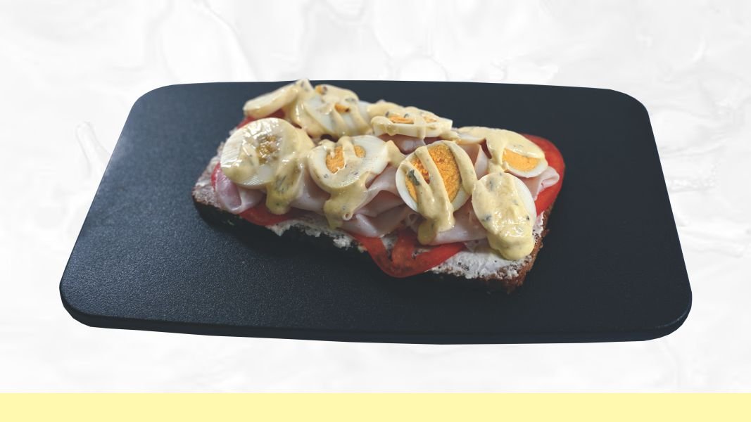 Punozrni hleb, niskomasni sir, dim. Piletina, mozzarela, paradajz, jaje, cezar dresing