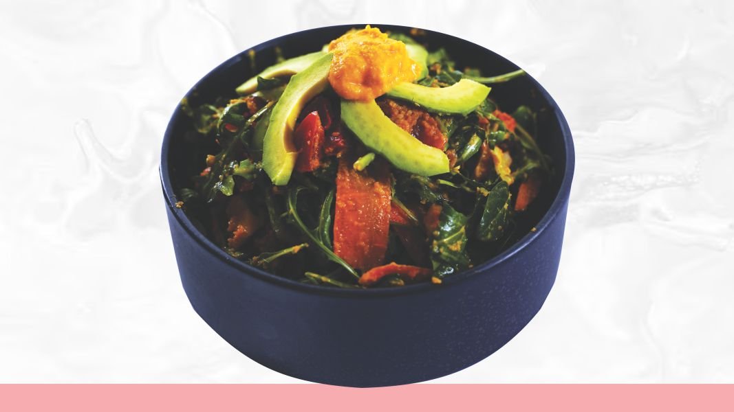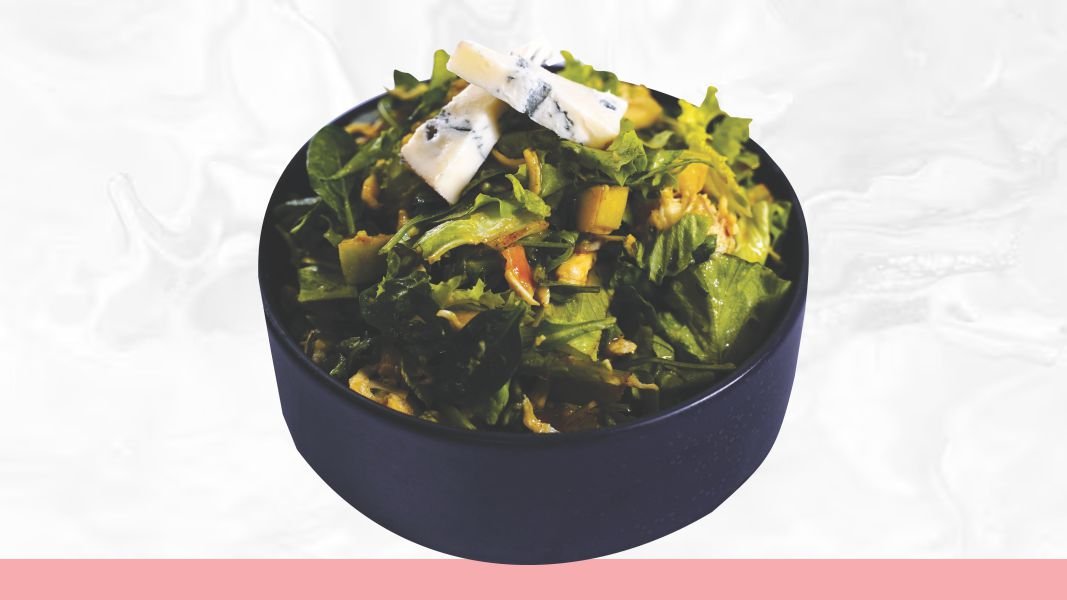 3 jaja, baby spanać, dim. Piletina, mozzarela, mix salata,feta sir, krutoni, pesto dresing