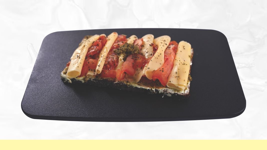 Punozrni hleb, niskomasni sir, pesto, mozzarela, paradajz