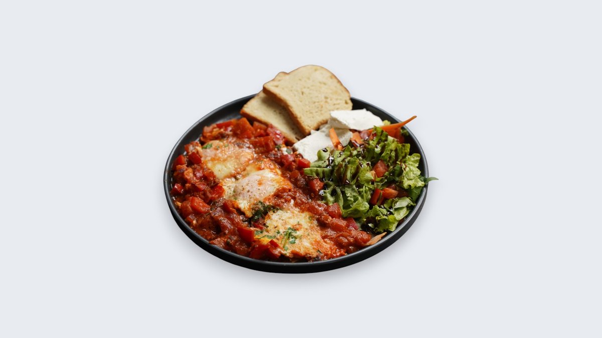 3 jaja, paprika, paradajz, beli luk, crni luk, paradajs sos, parmezan, peršun, dvopek, feta sir, mix.salata