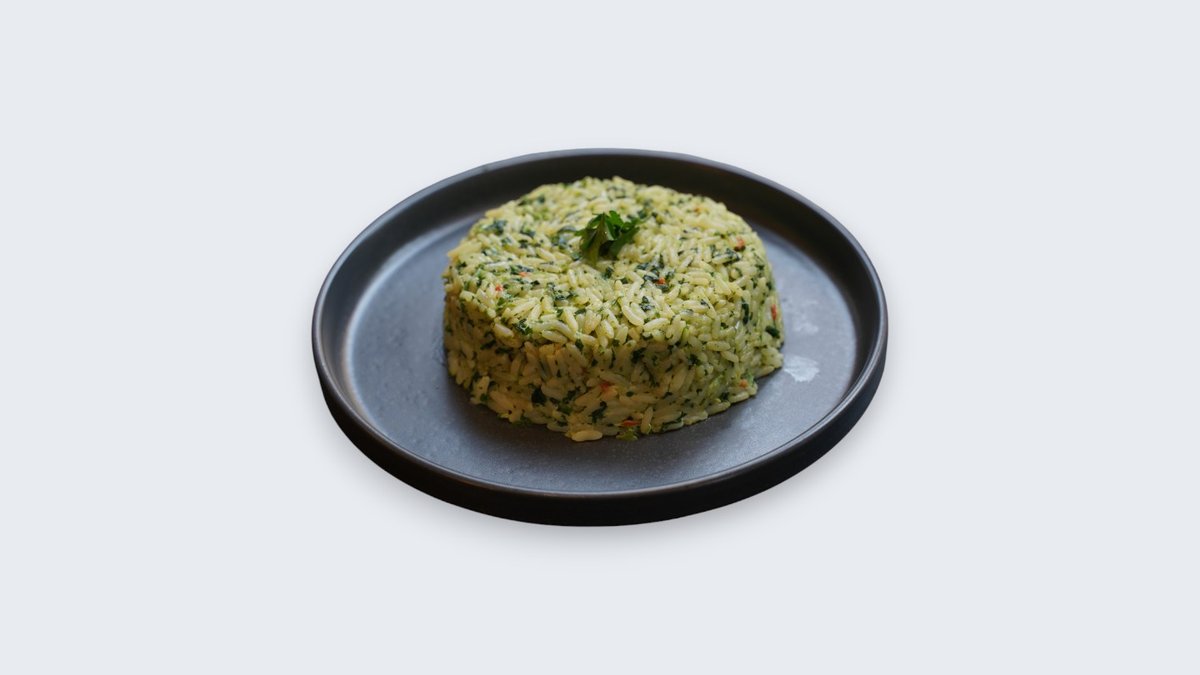 Pirinač, piletina, spanać, veganska pavlaka, beli luk, začini