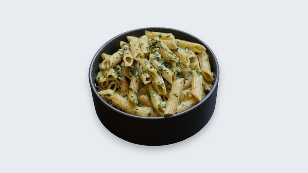 Integralna pasta, piletina, spanać, veganska pavlaka, beli luk, začini