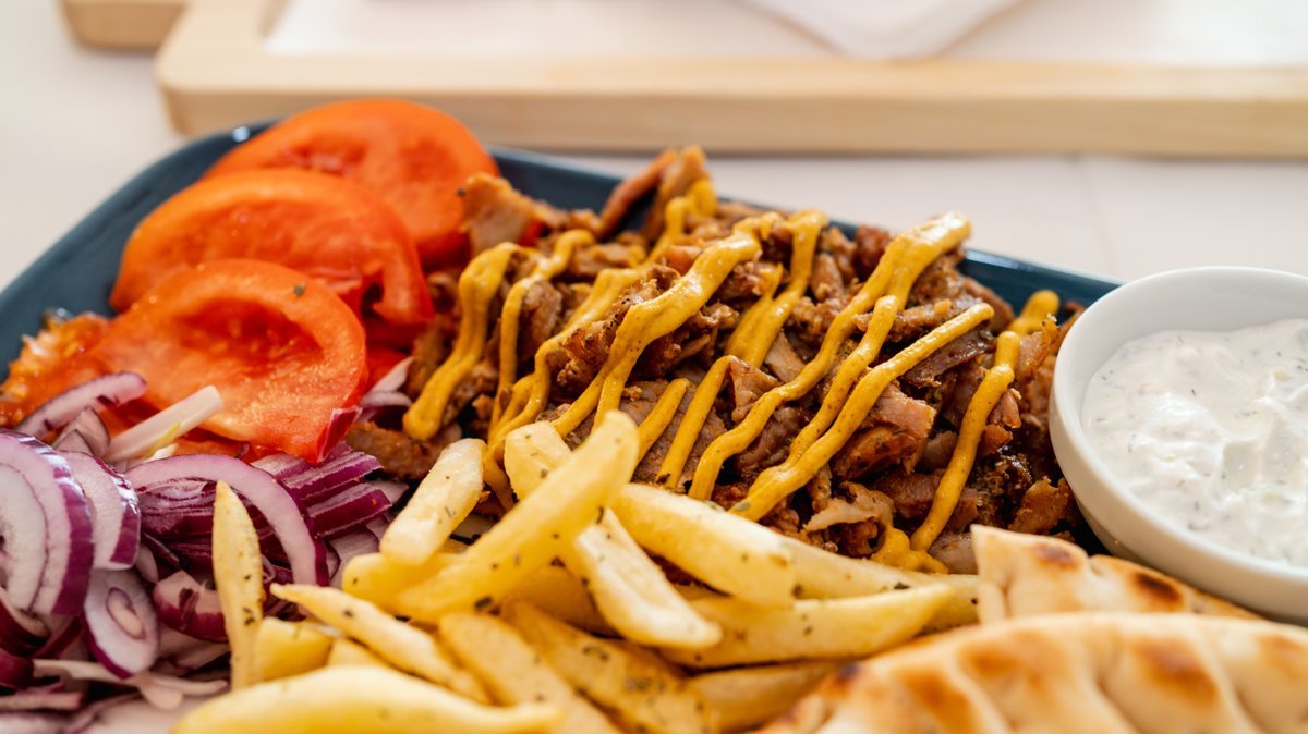 Gyros mix 200g mesa, pomfrit, gyros pita i prilozi po izboru