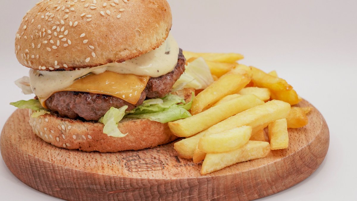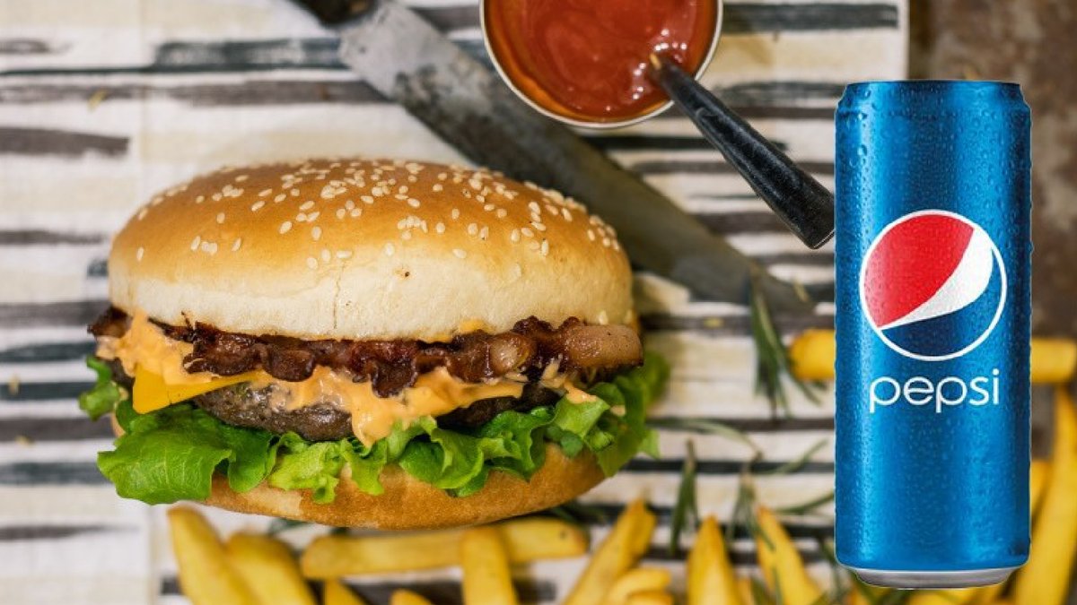 Cheeseburger (burger 100g, zemička, sir, burger sos, pomfrit), pomfri 150g i pepsi 0,33