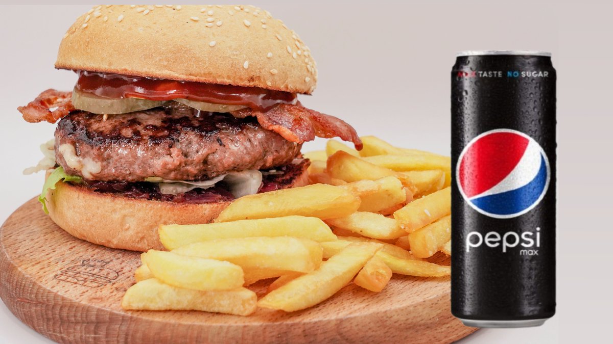 Angus burger po izboru, pomfrit sa strane i Pepsi Max 0.33