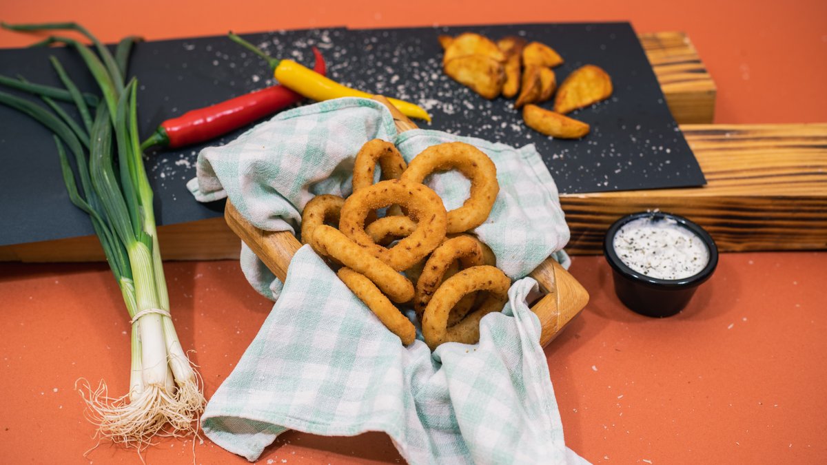 Tortilja, zelena salata, pohovani pileći file, crveni luk, tartar sos, pomfrit, vitaminska