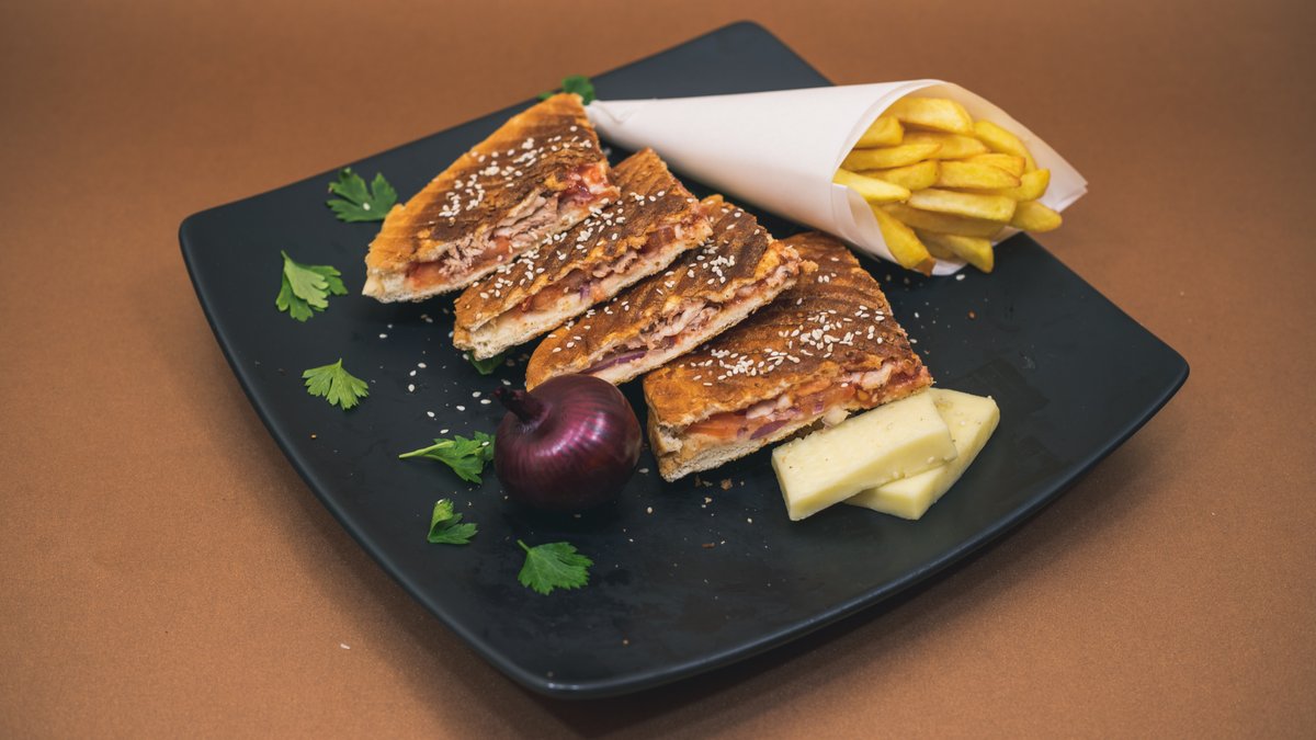 Tost lepinje, tuna, biljni kačkavalj, luk, paradjz, kečap
