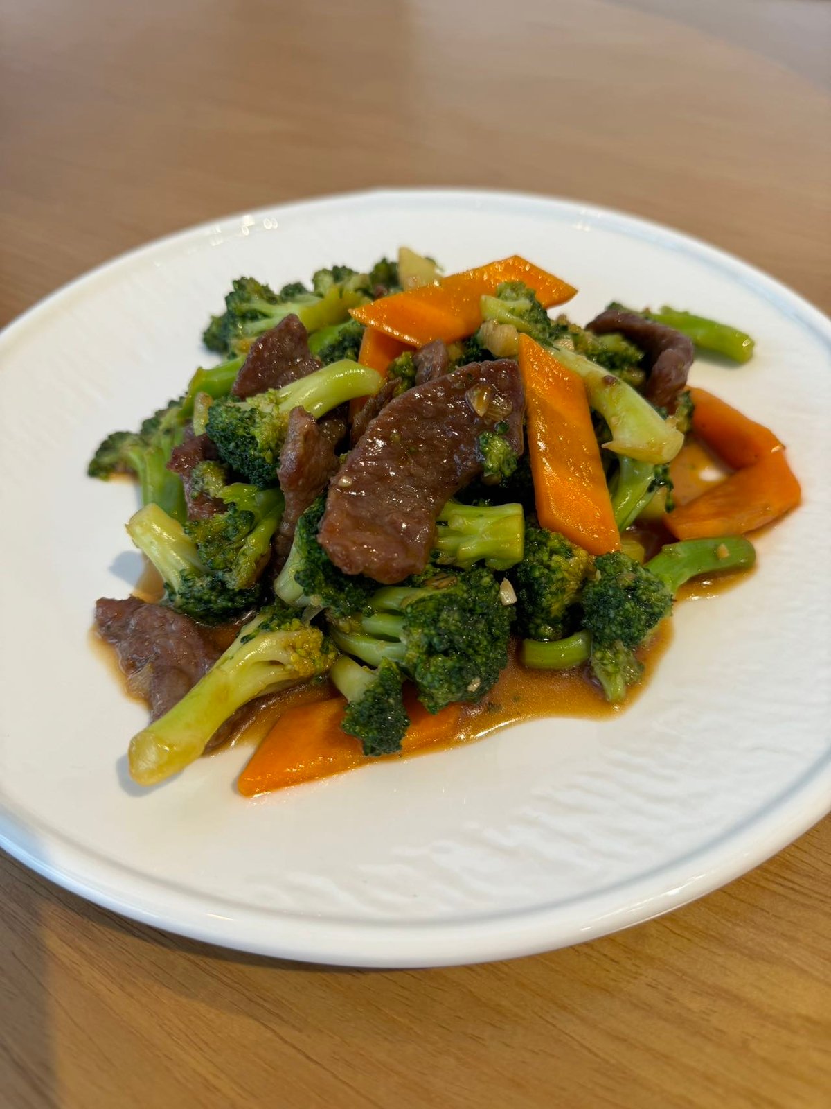 Govedina 250g, zelena paprika 15g,crvena paprika 15g, luk 20g