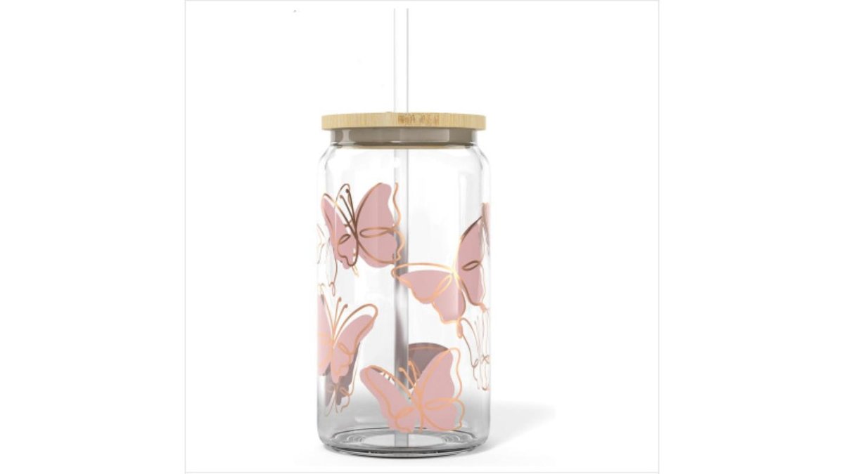 Be Cute Staklena čaša sa slamčicom, leptir ,A095383