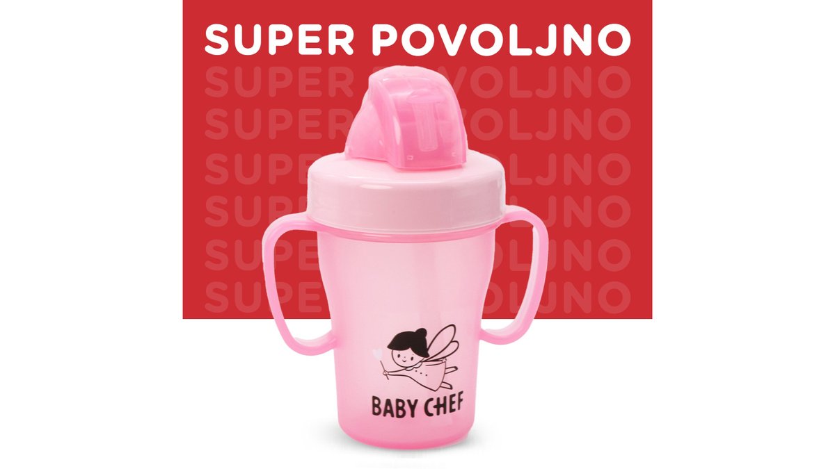 Baby Chef no-spill sa slamčicom 200ml, 9m+, roze ,A083710
