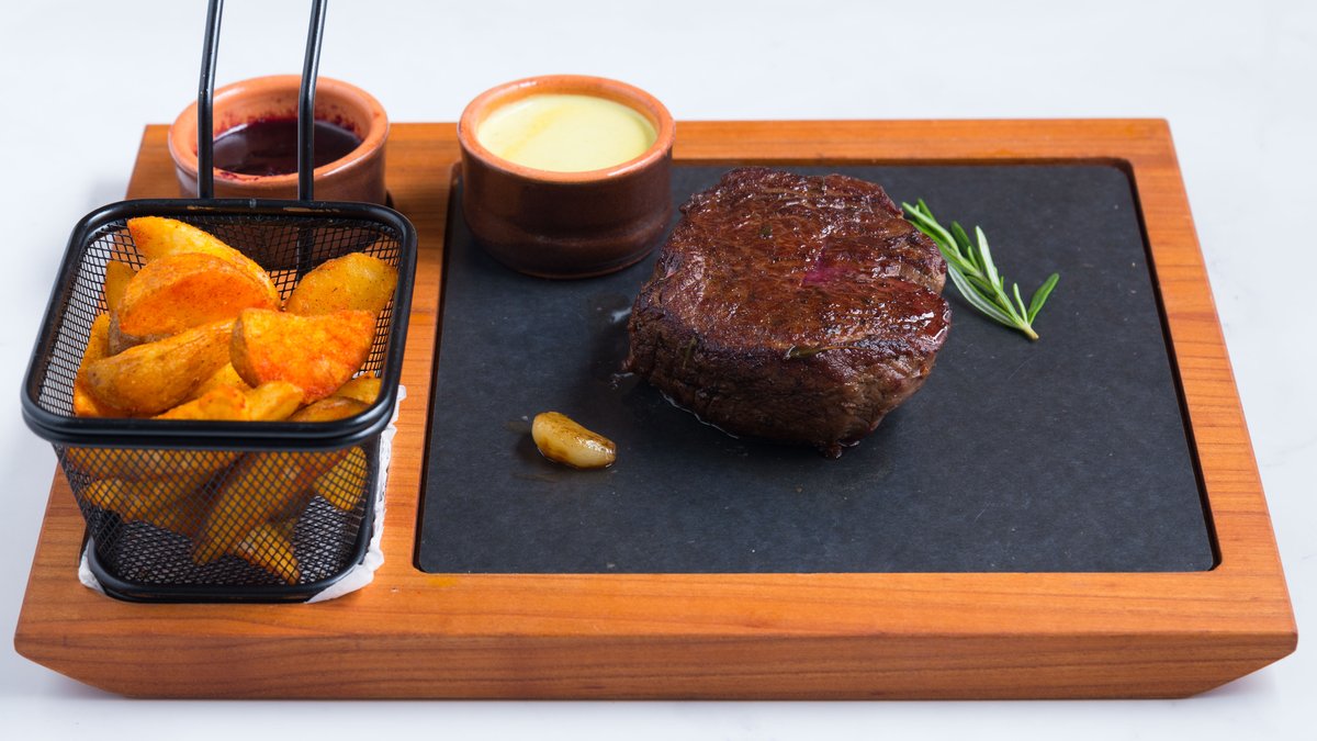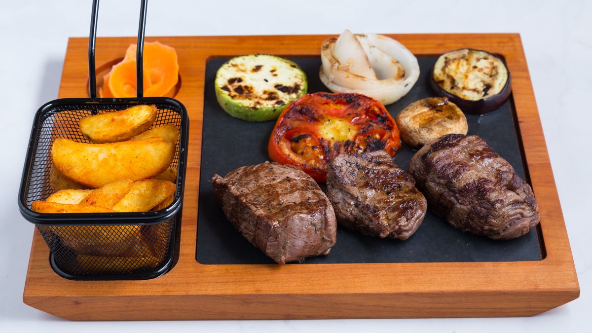 Trio biftek 300g sa grilovanim povrćem i začinskim krompirom