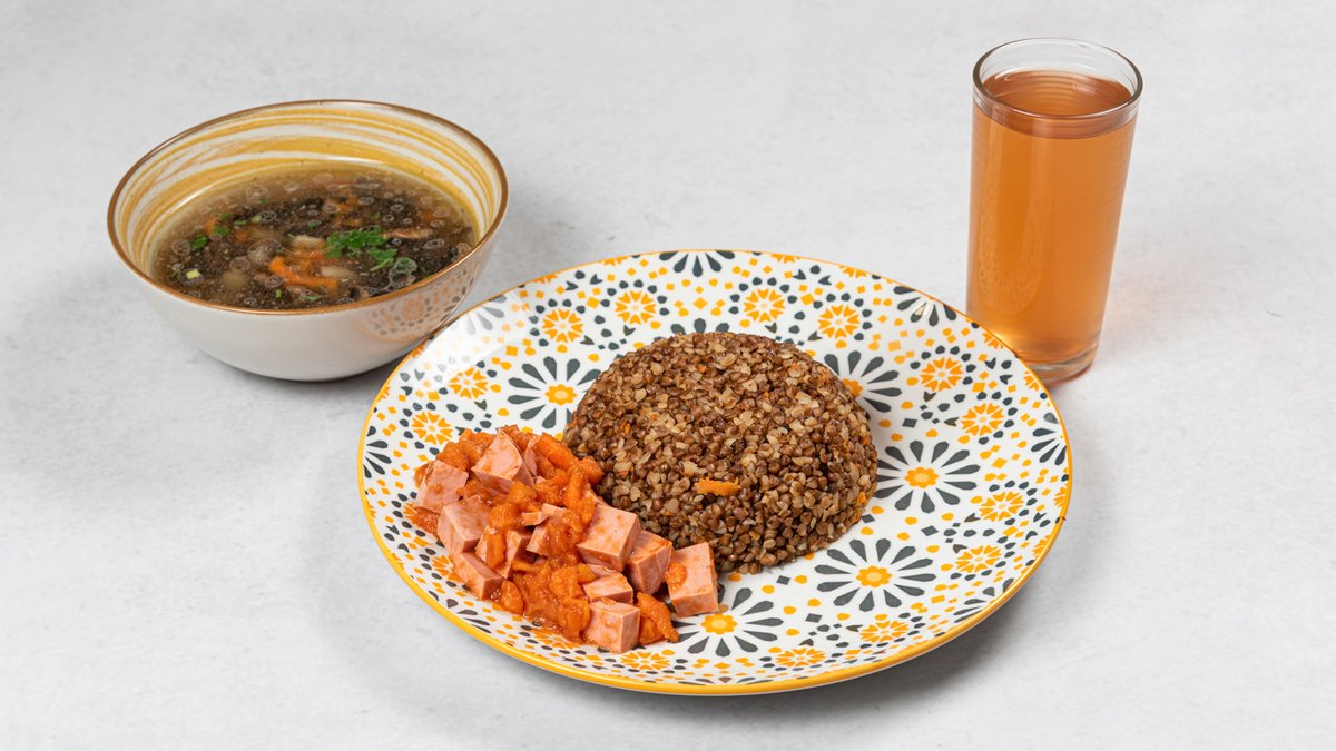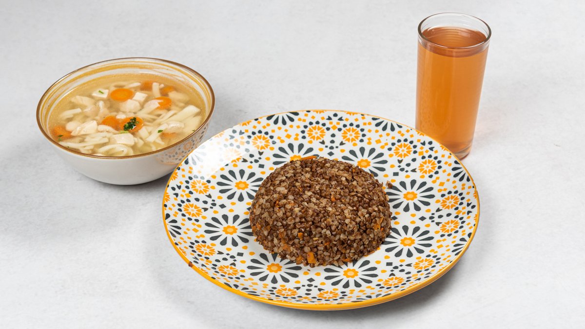 Pileća supa + heljda + kompot