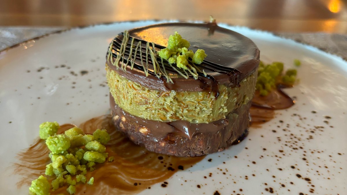 Belgijska mlecna cokolada,pistac krem,kadaif,ekspandirani pirinac