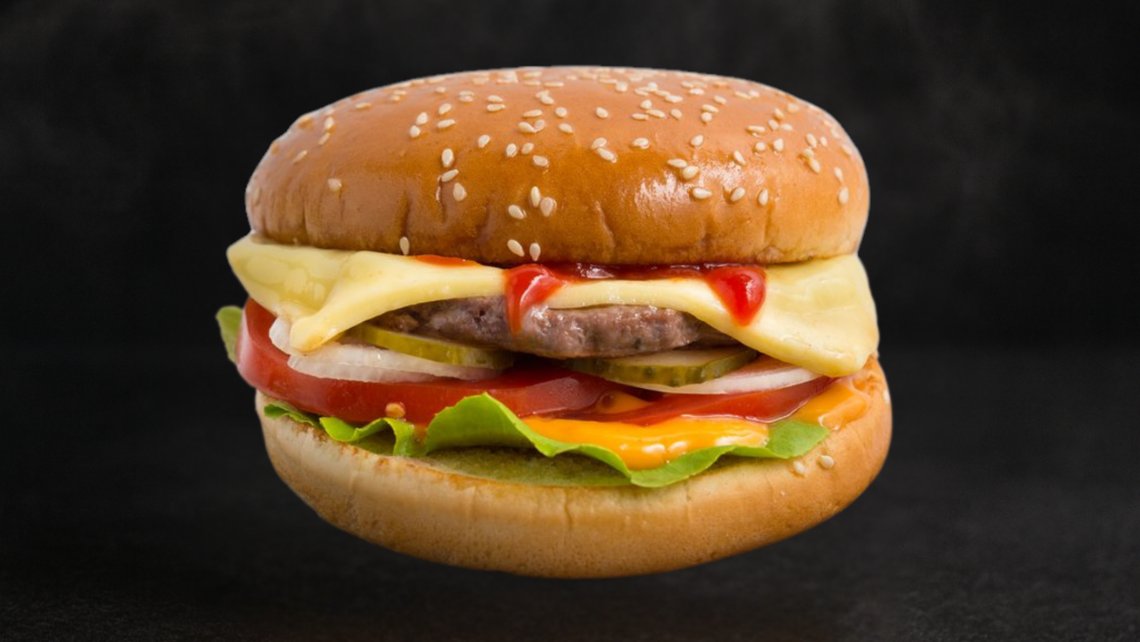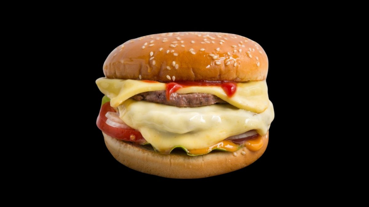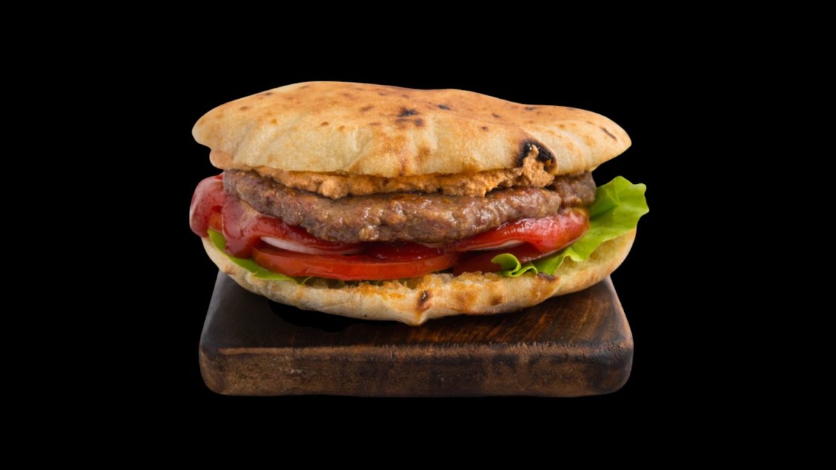 Puter zemička, 100% Juneće meso x 2, Kačkavalj x 2, Brgr sos, Paradajz, Luk, Kiseli krastavac, Zelena salata, Heinz kečap