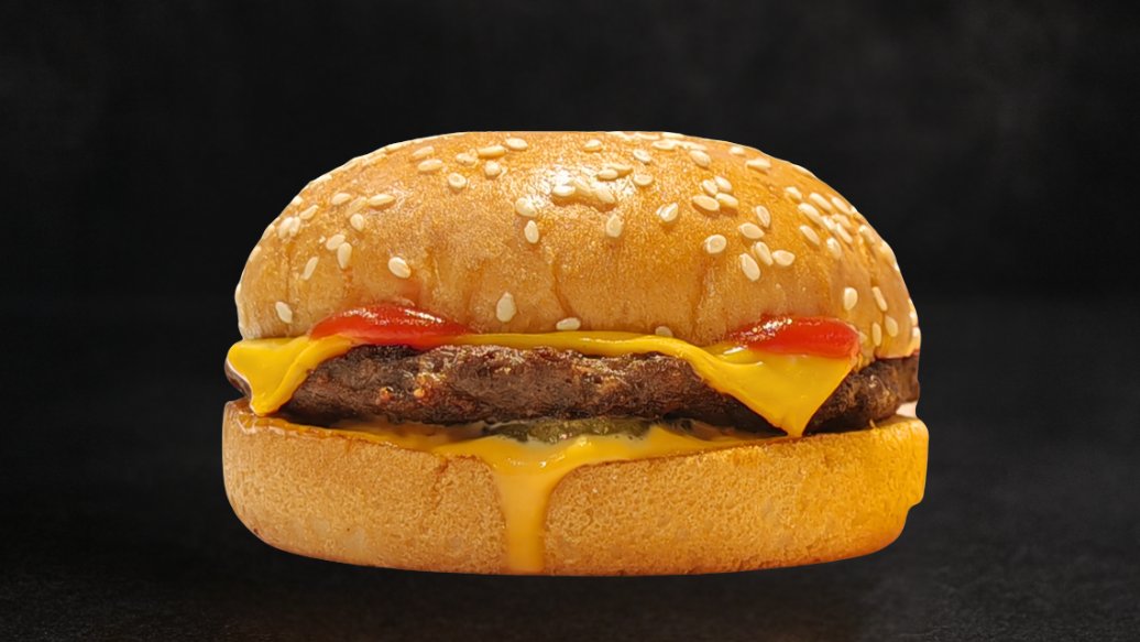 Puter zemička, 100% Juneće meso, Kačkavalj, Slanina, Brgr sos, Kentaki sos, Paradajz, Luk, Kiseli krastavac, Zelena salata, Heinz kečap