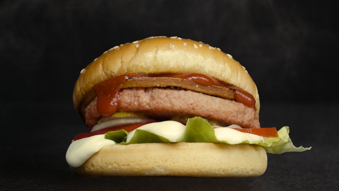low carb proteinska zemička, 100% junetina, jaje, proteinski sir od badema, light meyo sos od tartufa, low fat sirni namaz, heinz kečap sa 50% manje šećera, zelena salata, paradajz, luk. kcal: 476, m:30, uh: 7, P: 40