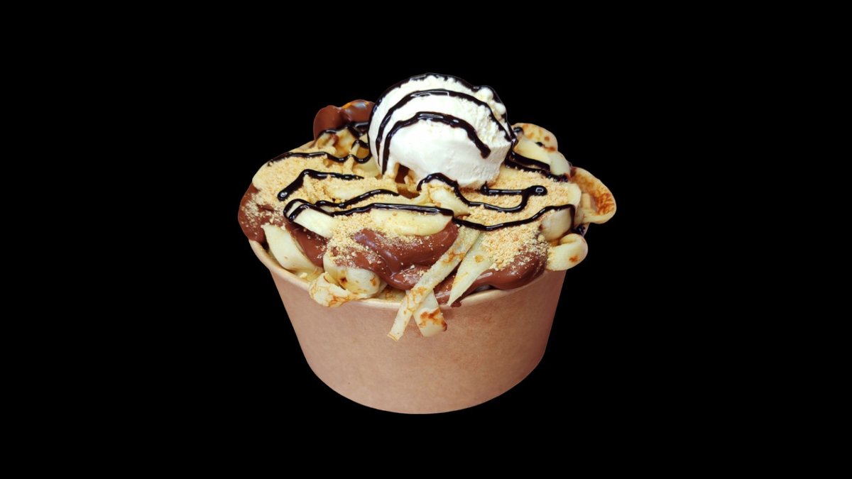Špageta palačinka, Nutela, Plazma, Banana, Sladoled od vanile, Toping