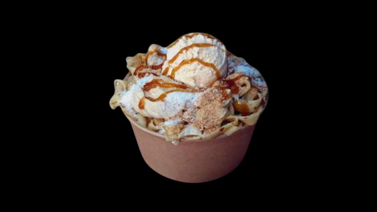 Špageta palačinka, Beli lešnik krem, kokos, Plazma, Sladoled od vanile, Toping
