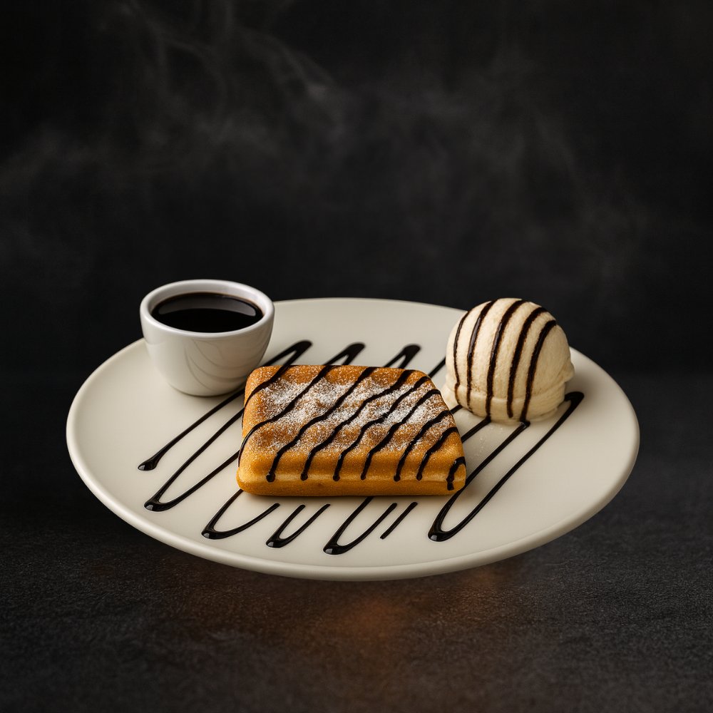 waffle punjen belgijskom čokoladom, sladoled vanila, čokoladni toping