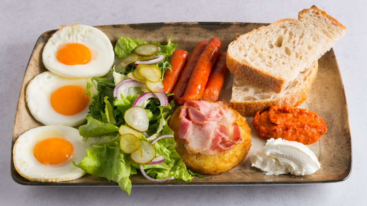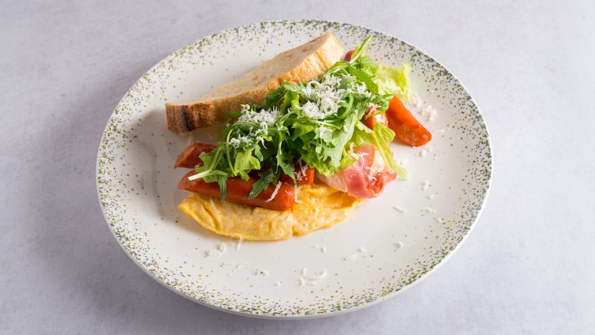 Omlet u azijskom stilu sa lososom, kuvanim pirinčem i svežim krastavcem